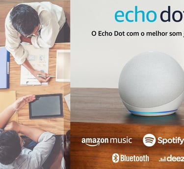 A assistente Alexa facilita tarefas diárias, como definir lembretes, criar listas, controlar dispositivos inteligentes e até contar piadas para animar o dia. A integração com serviços de streaming como Spotify e Amazon Music torna a experiência musical ainda melhor.