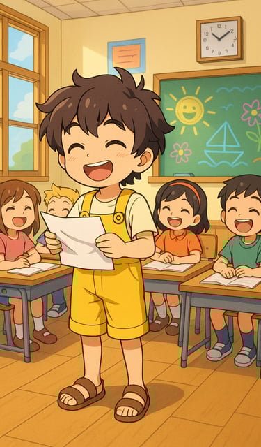 Lucas pegou o caderno, Pra escrever sem pressão, Mas acabou criando um verso Que só dava risada em mão. "Teu sorriso é uma estrela, Teu olhar é um vulcão, Mas quando come coxinha, Causa grande agitação."