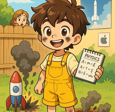 Lucas tentou lançar seu foguete caseiro, mas ele explodiu no quintal, deixando todos assustados e rindo. Ele aprendeu que, às vezes, é preciso falhar para aprender.